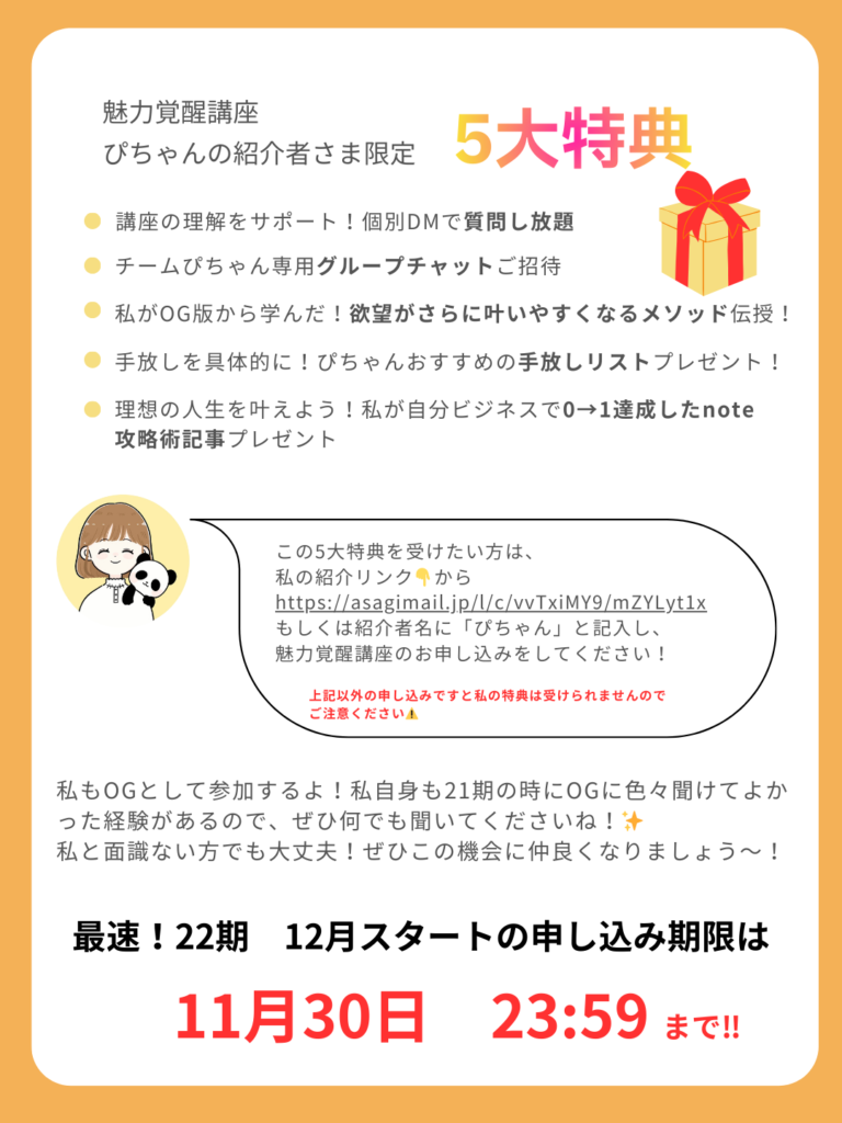 魅力覚醒講座21期OG ぴちゃんLINE👇